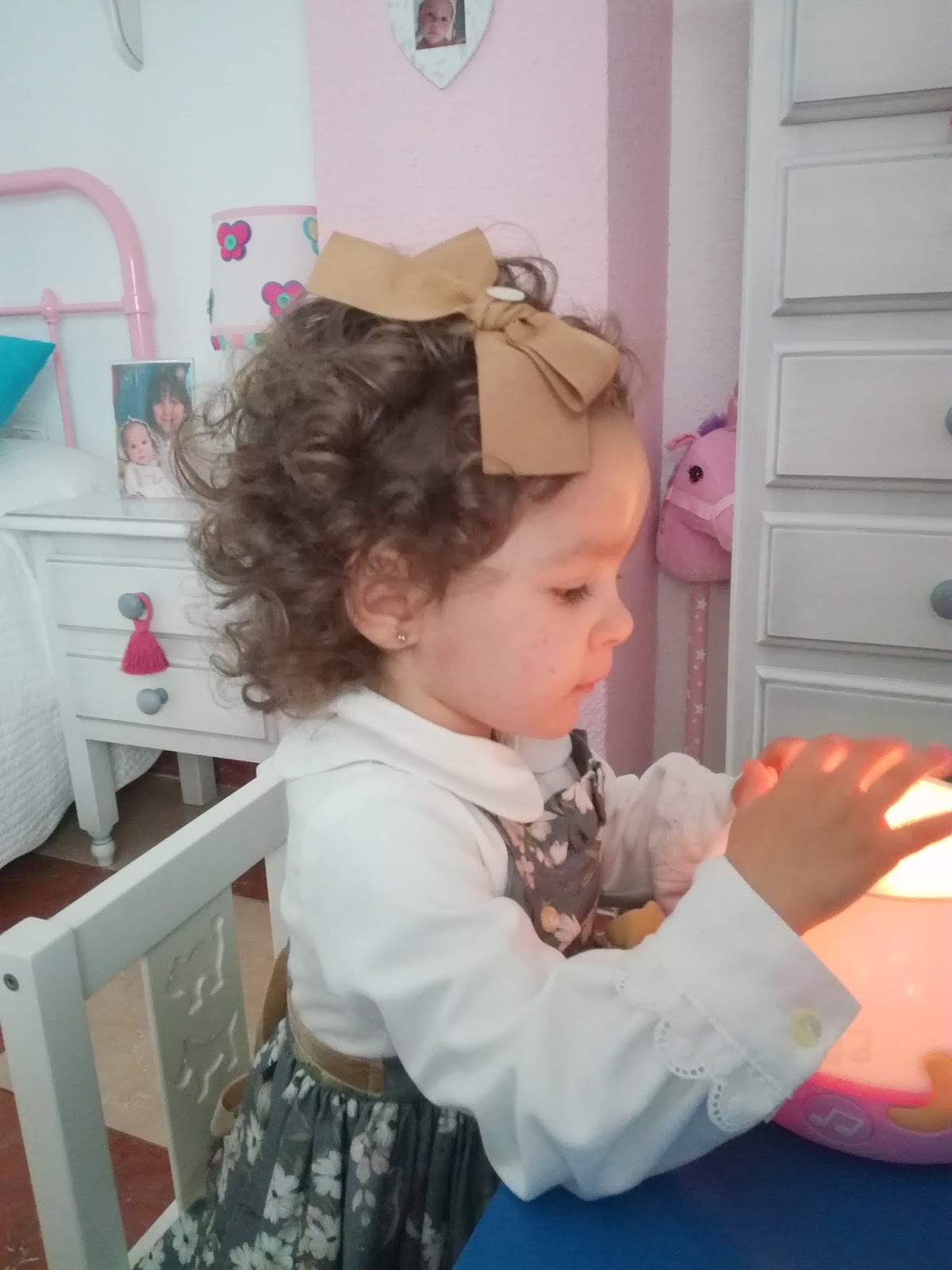 Sabéis que yo la objetividad la perdí el día que fui madre, a ver, soy objetiva con mis hijos, mucho además, pero de puertas para adentro, de puertas para afuera la veo perfecta con este jesusito que parece diseñado para ella, porque una vez más lo veo muy Alejandra. Se lo hemos puesto varias veces y siempre hace igual, dar vueltas y vueltas para ver el vuelo de la falda. Aunque parecen dos piezas, realmente la blusa va pegada a la falda y hace la función de cuerpo del vestido y de ahí lo impecable porque la blusa no se sale jamás.